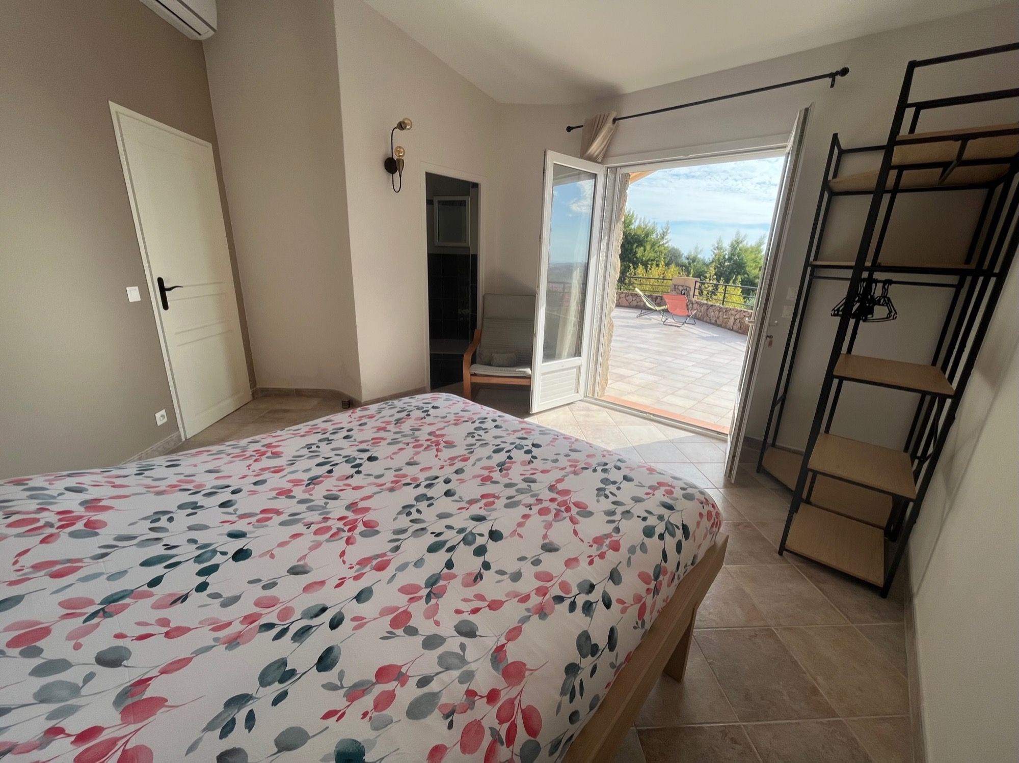 Ouverte sur la terrasse grâce à la baie vitrée à galandage, vous bénéficiez de la vue mer exceptionnelle